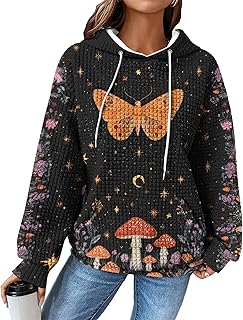 Hooded Sweatshirt Women Elegant Waffle Knit Hoodie With Pocket Casu...