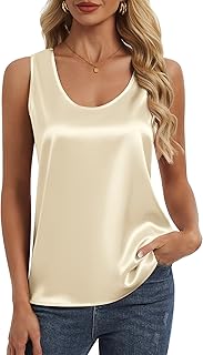 Silk Satin Tank Tops for Women Summer Scoop Neck Camisole Tops Dres...