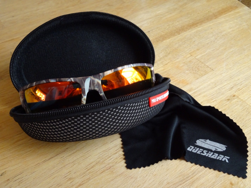 See the linked videos for the unboxing part 1 but they come with a fantastic hard case soft case and a cleaning cloth. There is also a diagram that allows you to test the polarisation effect.