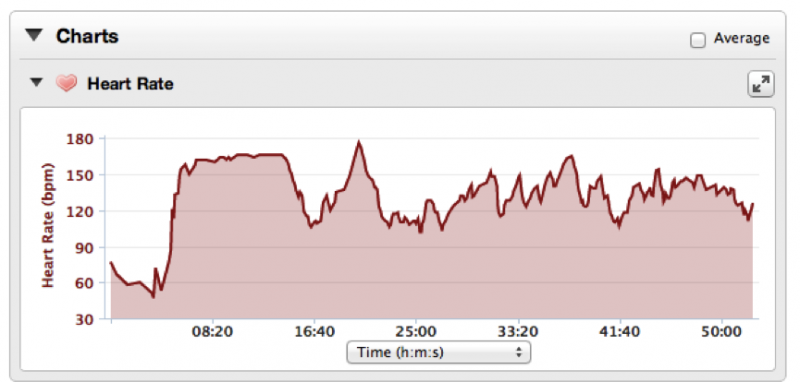 I used the watch in the gym to track my heart rate wile exercising and keep my work rate in the sett zone of fat burning, and occasionally pushing things since I need to work on my fat burning a bit. I just realized that the strap wasn’t noticeable and so means its non intrusive – I think the watch position on my wrist intruded just once while doing chins – I pulled it further away from my hand without the need to loosen it and it was good. Here is the trace from GC (Garmin Connect)