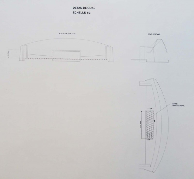 This is two drawings showing the ends which along with 'wooden' like sides and base form the stadum. Notice the goal kick flicker which is simply moulded nto the stadium end. Also notice the scoreboard. The stadium is a good design sugesting a grand maracana style stadium.